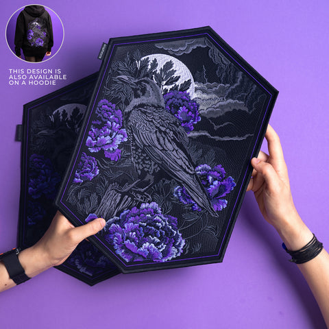 Inspired by the mystery and elegance of the Victorian and Medieval eras, this Embroidered Patch blends the dark allure of a crow under a full moon with the delicate beauty of purple peonies. The design evokes a sense of gothic romance and timeless mystique, capturing the poetic shadows of the night sky.