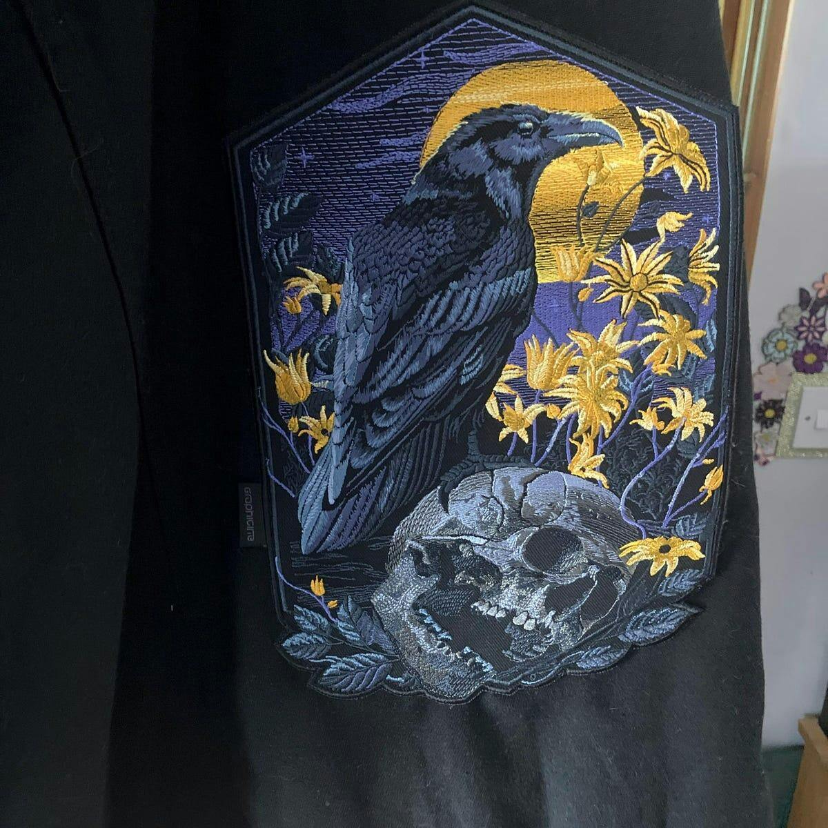 Add a touch of dark elegance to your style with our Embroidered Crow & Skull Patch, featuring a striking crow perched on a skull in deep purple tones. Perfect for fans of gothic fashion, emo style, and alternative aesthetics, this patch brings a bold, mysterious edge to jackets, sweatshirts, bags, or hats.